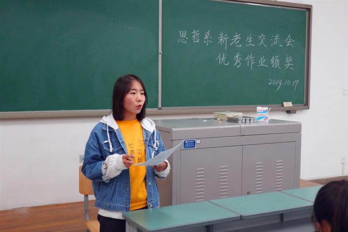 为营造良好的学习氛围,促进思哲系优良学风传承,使19级新同学更好地适应大学课程学习,10月17日晚,政新葡的京集团8814vip思哲系在文荟楼332教室举办思哲系新老生交流会及优秀作业颁奖活动。政新葡的京集团8814vip思哲系主任林冬子主持活动,思想政治教育专业本科生学生到场参加。
