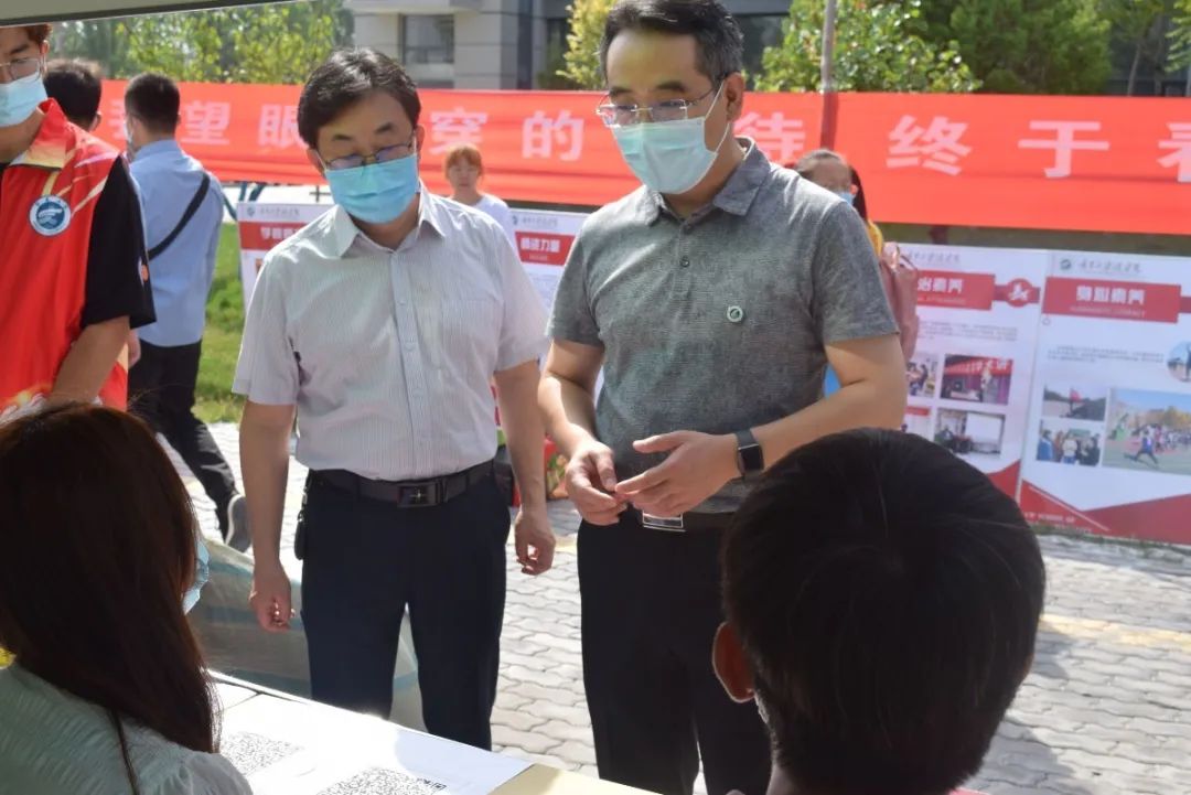 学校领导十分关注我院迎新工作的开展情况。迎新当天,校领导和学校相关职能部门负责人莅临我院迎新点,检视我院迎新工作,并向新生传递了期许和关切。