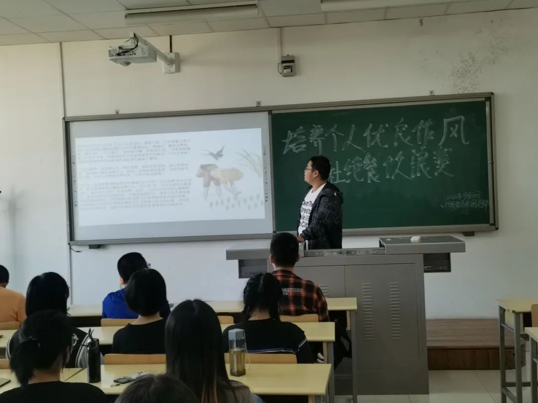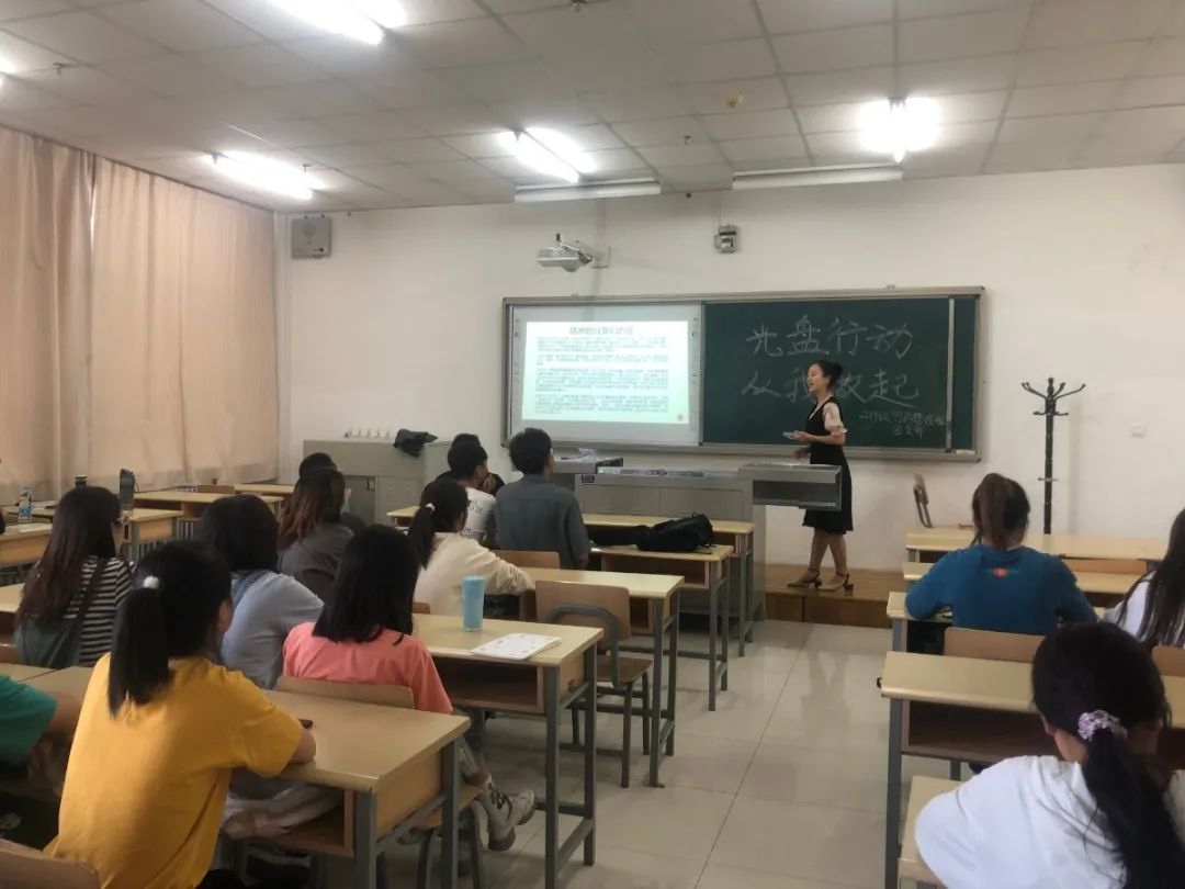 活动开始,主持人介绍了活动背景,提出了六条制止餐饮浪费的倡议。随后 ,同学们就“结合国际形势谈谈节约粮食的原因及如何践行光盘行动”进行了热烈讨论。同学们说:“联合国粮农组织统计显示全球每年约1/3粮食被损耗和浪费总量约每年13亿吨,世界76.33亿人口中至少还有8.2亿面临饥饿,相当于世界上每9人中就有1人挨饿。面对新冠疫情的冲击,联合国粮食及农业组织世界粮食计划署表示全球或将迎来50年来最严重的粮食危机。每个人都应该从我做起、从小事做起,自觉厉行节约、反对浪费。”
