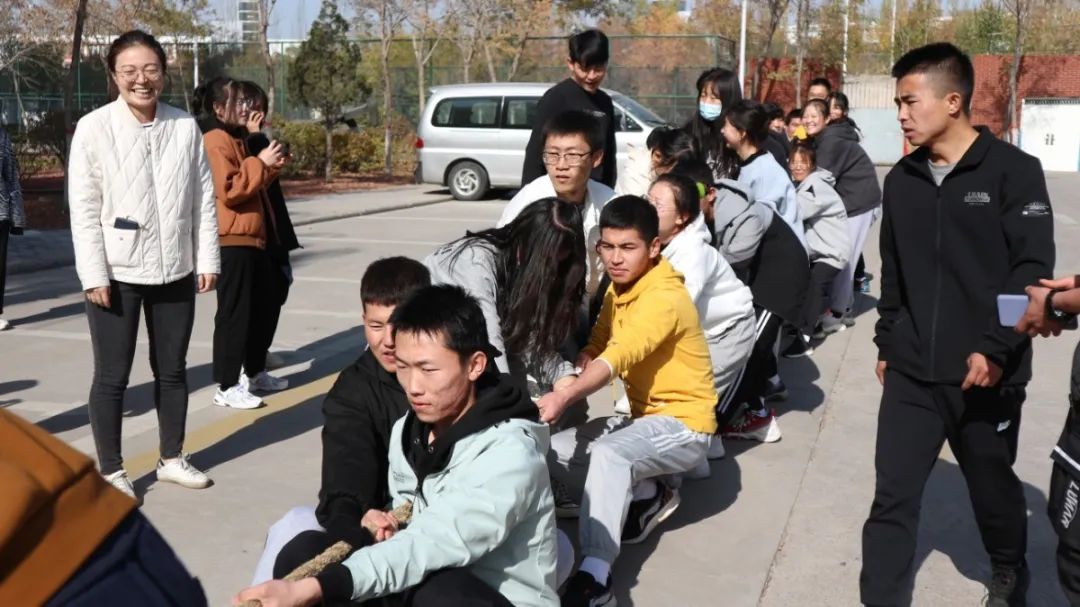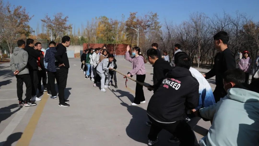 裁判一声令下,双方队员齐心协力,观战的同学的心情随着绳子的移动而起伏。比赛激烈而有序的进行着。