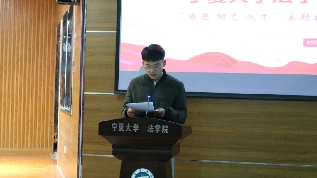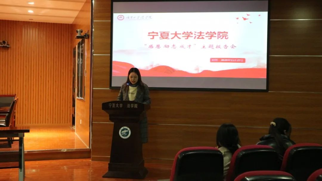 为进一步发挥学生资助工作的育人和导向作用,落实立德树人的根本任务,增强青年大学生的感恩、诚信、责任意识,新葡的京集团8814vip于11月27日晚在文荟楼模拟法庭举办了“感恩 励志 成才”主题教育先进事迹报告会,我院2018、2019级受助学生代表和2020级全体同学参加。