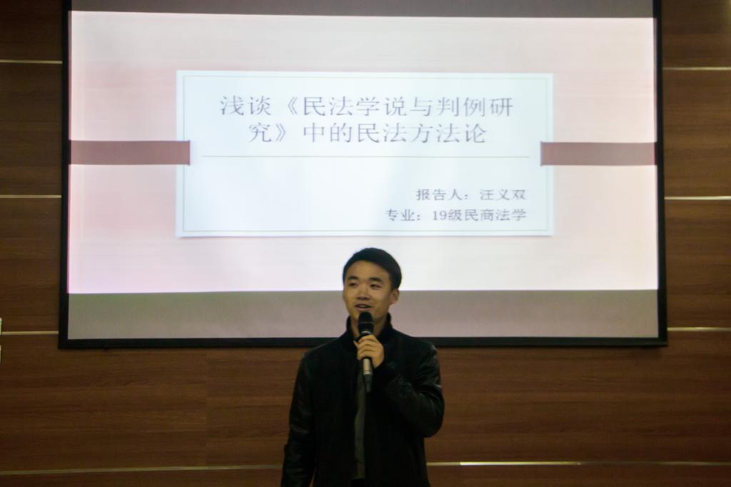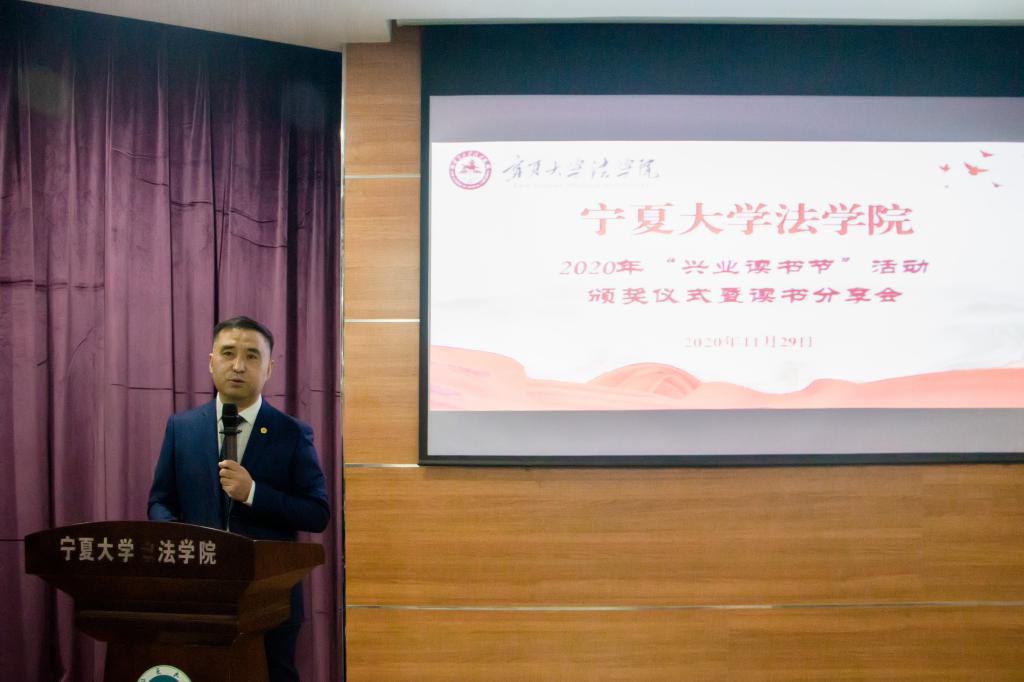 在读书分享环节,2020年“兴业读书奖学金”获奖学生2019级民商法学研究生汪义双、2018级法学一班徐绍宇、2019级哲学班研究生赵潇、2019级法学一班杨丽分别作了题为《浅谈<民法学说与判例研究>中的民法方法论》、《<论犯罪与刑罚>之读后思考》、《<论神学政治论>中的“宗教”与“理智”——<神学政治论>读后感》和《有<西班牙旅行笔记>陪伴的日子》的读书分享。活动最后,宁夏兴业律师事务所合伙人郝运清致辞,他鼓励同学们多读书,读好书,用书籍丰富生活,以知识充实人生。