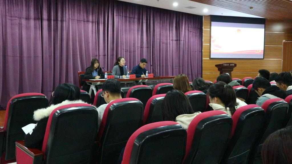 为贯彻落实共青团中央《“青年马克思主义者培养工程”实施方案》有关精神和校团委的相关要求,培养出一批具有社会主义核心价值观的优秀大学生骨干,我院拟于12月举办“青年马克思主义者培养工程”团学骨干培训班,开幕式于12月1日中午在文荟楼模拟法庭举行。学生工作办公室负责人王嘉豫、辅导员黄博阳、刘思彤出席本次开班仪式,全体参训学员到场参加。仪式由刘思彤主持。