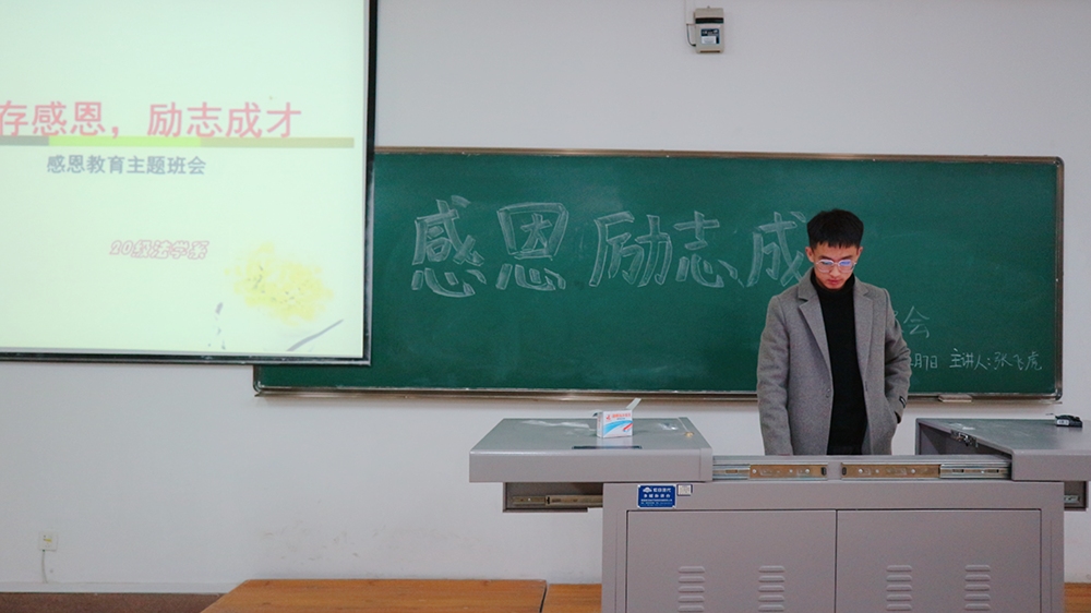为引导学生学会知恩、感恩、报恩,激励学生刻苦学习,成为有理想、有信念、有进取心的新时代青年。12月7日晚,新葡的京集团8814vip2020级各班分别在文荟楼组织开展“感恩·励志·成才”主题班会,由各班班长主持。
