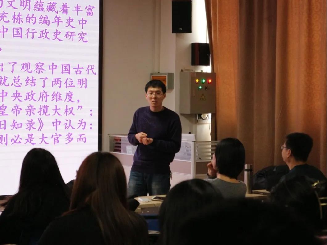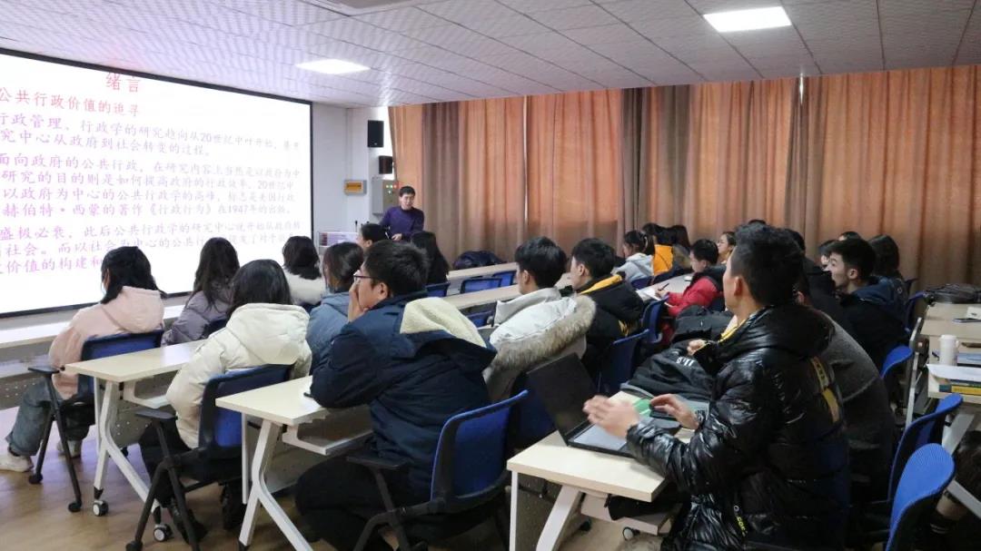 讲座伊始,贾陈亮老师开门见山、直入主题,为大家介绍了中国及世界行政史观的发展变化。随后,贾陈亮老师用幽默风趣的语言,生动形象的为同学们讲述了中国行政史的发展和变化。讲座临近尾声,同学们依然意犹未尽,纷纷表示在此次讲座过程中收获良多。最后,伴随着热烈的掌声讲座结束,同学们有序离场。