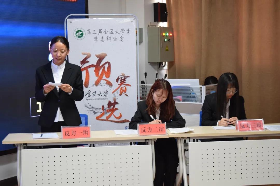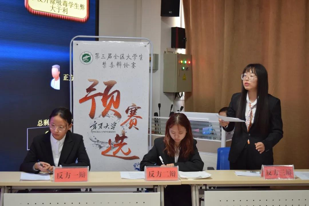 5月26日下午,新葡的京集团8814vip于文萃校区法治教育基地举办宁夏大学禁毒辩论赛暨第三届全区大学生禁毒辩论赛预选赛复赛、决赛。新葡的京集团8814vip演讲与辩论社教练杨雅静、马文静、崔晨曦担任第一场复赛评委,张航溥、吴玲、曹子怡担任第二场复赛评委,张航溥、吴立仙、吴玲担任决赛评委。比赛辩题为“学校开除吸毒学生利大于弊还是弊大于利”。