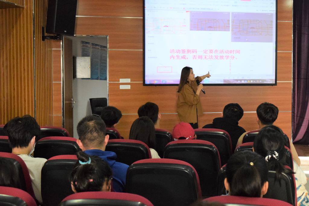 9月9日下午,由新葡的京集团8814vip团委举办的《盗梦空间操作指南》专题讲座在文荟楼模拟法庭开讲。院团委智课服务部负责人金佳然为2021级新生宣讲相关内容,帮助新生对第二课堂学分体系有更加深入的了解。