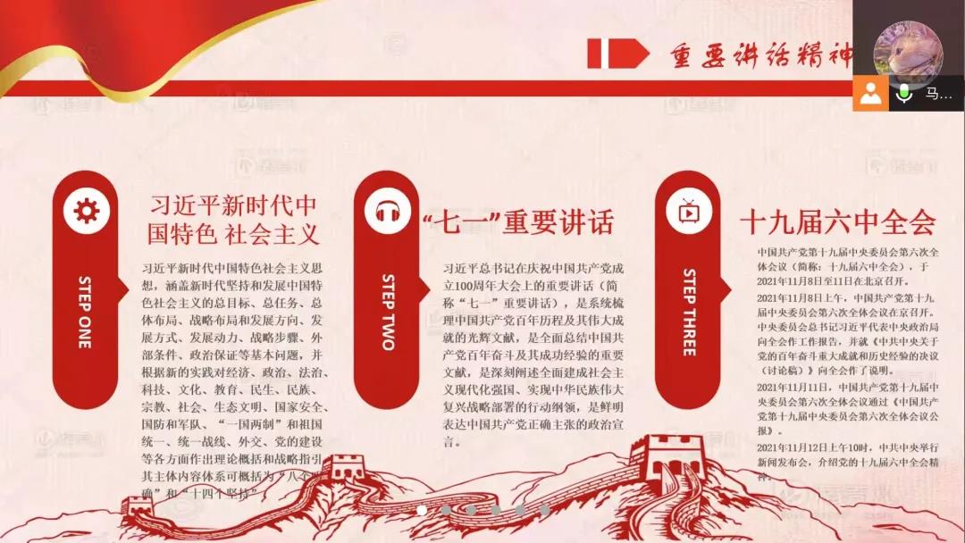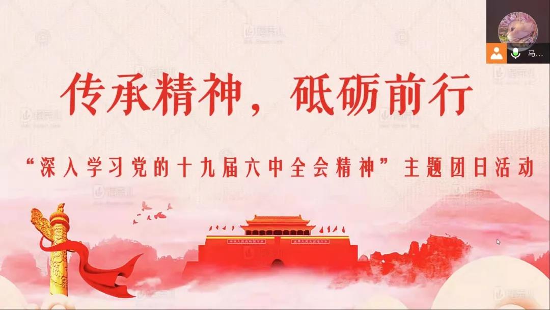 为深入学习贯彻习近平总书记重要讲话精神和党的十九届六中全会精神,11月17日,新葡的京集团8814vip各团支部开展了“深入学习党的十九届六中全会精神”主题线上团日活动,各团支部以主题分享、观看相关视频等方式进行。