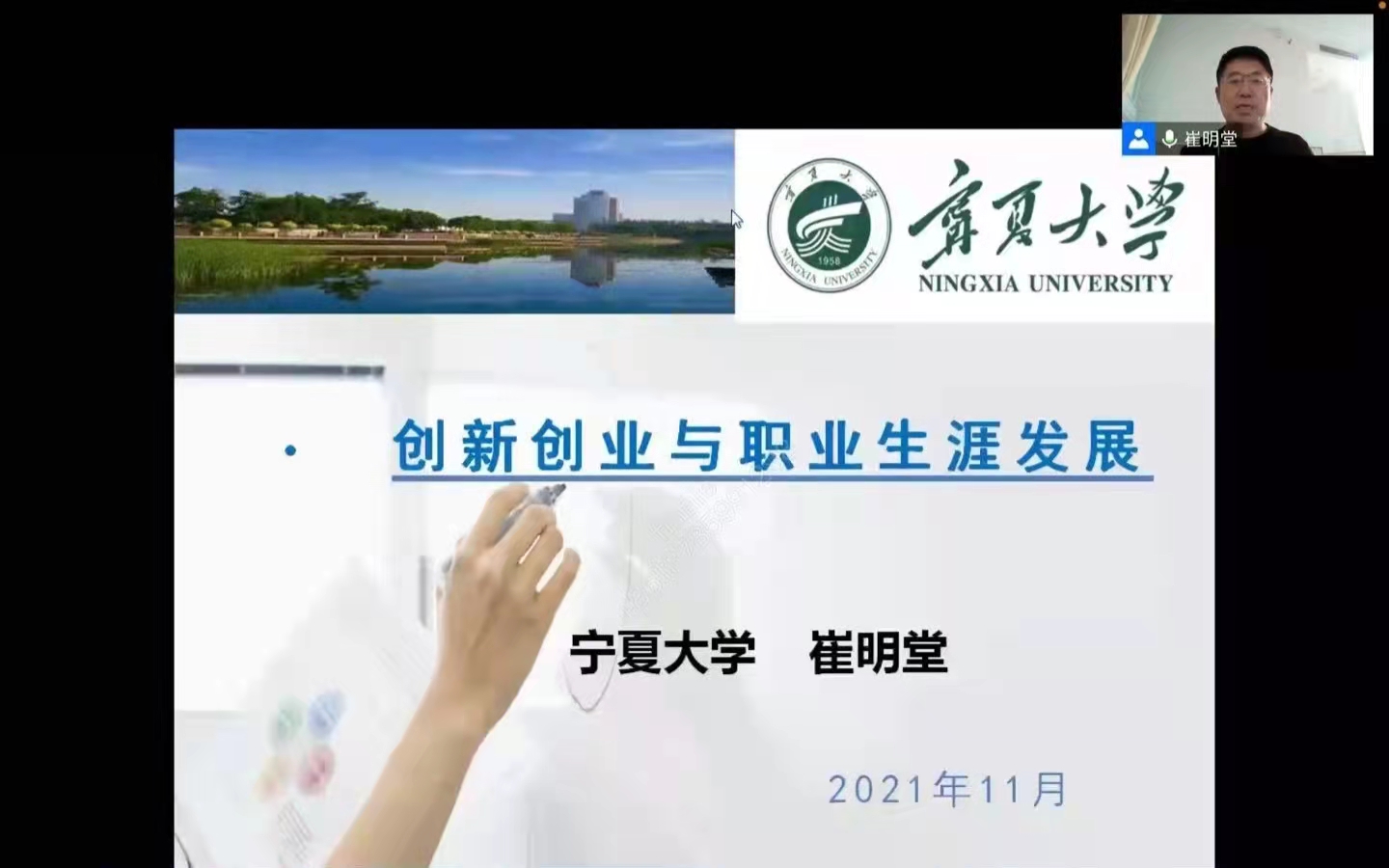 11月19日下午,新葡的京集团8814vip官方登录针对2022届毕业生开展了以“创新创业与职业生涯发展”为主题的讲座。该讲座聚焦大学生自主创业相关内容,由宁夏大学回族研究院党委书记崔明堂主讲,2022届全体毕业生参加。