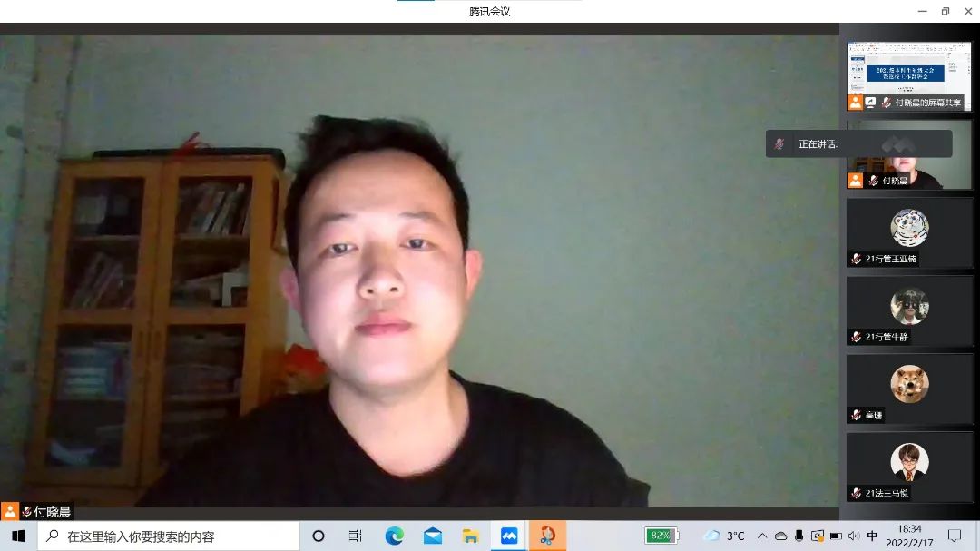 为全面落实疫情防控常态化工作,切实抓好2022年春季学期开学复课各项工作,保障师生安全返校、顺利开学,2月17日晚,学院分别组织召开了全日制本科生、研究生年级大会暨返校工作部署会。会议由院学生工作办公室主任王嘉豫、辅导员付晓晨分别主持,全体全日制本科生、研究生线上参会。