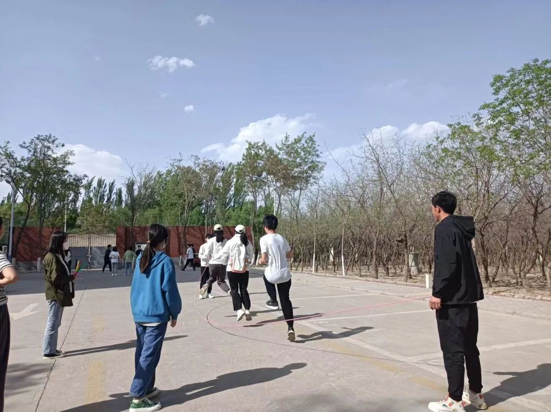 多人长绳比赛:灵巧的小跳,轻轻一跃,如海上的浪花,似矫健的云燕,翻飞的绳,摇动着健身的欢畅,矫健的身姿,舒展在操场之上。参赛的每一位同学,每一个团队,都牵动着在场所有人的心。大家彼此加油、呐喊,现场的气氛热烈又活泼。这不单是智慧与体力的角逐,更是团结与协作的完美比拼,同学们的默契配合让比赛现场更加趣味横生。