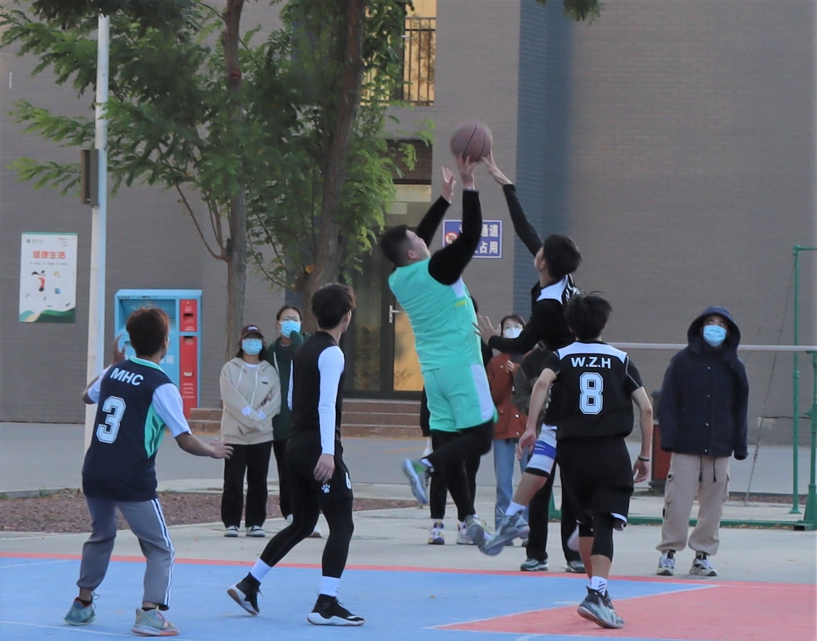 比赛开始前,场边陆续围满了观众,参加比赛的队员们也热情高涨,摩拳擦掌,为即将到来的比赛做准备。随着裁判的一声哨响,激烈的篮球赛拉开帷幕。