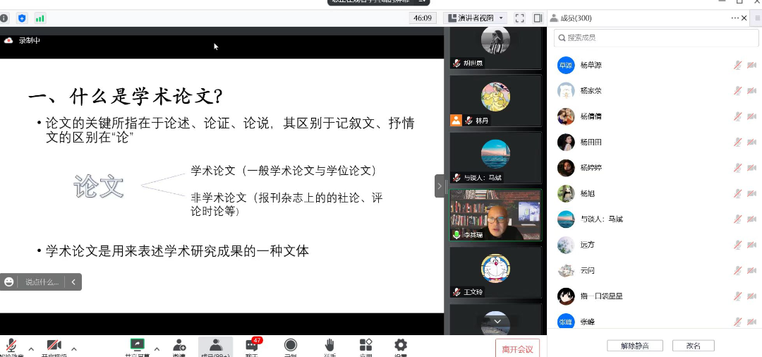 讲座中,李其瑞为同学们讲解了什么是学术论文、参考文献与注释体例、论文选题与写作方法、学术规范等内容,并从格式、逻辑、内容等方面介绍论文写作的基本要求,就同学们所关注的选题挖掘,前沿追踪,论文撰写等话题深入展开讨论,帮助大家夯实学术研究基础,提高论文写作能力。