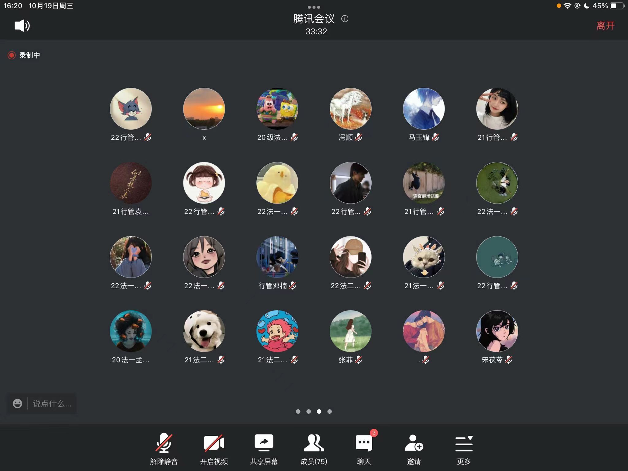 为营造良好的学习环境和浓厚的学术氛围,鼓励同学们早立目标、刻苦学习、努力拼搏。10月19日下午,我院举办“研之有理,研途有你”线上考研保研经验交流分享会,邀请2019级法学专业程雪玲,行政管理专业郎琳智、王君,社会学专业赵培龙作为分享人,2022级全体本科生参加。