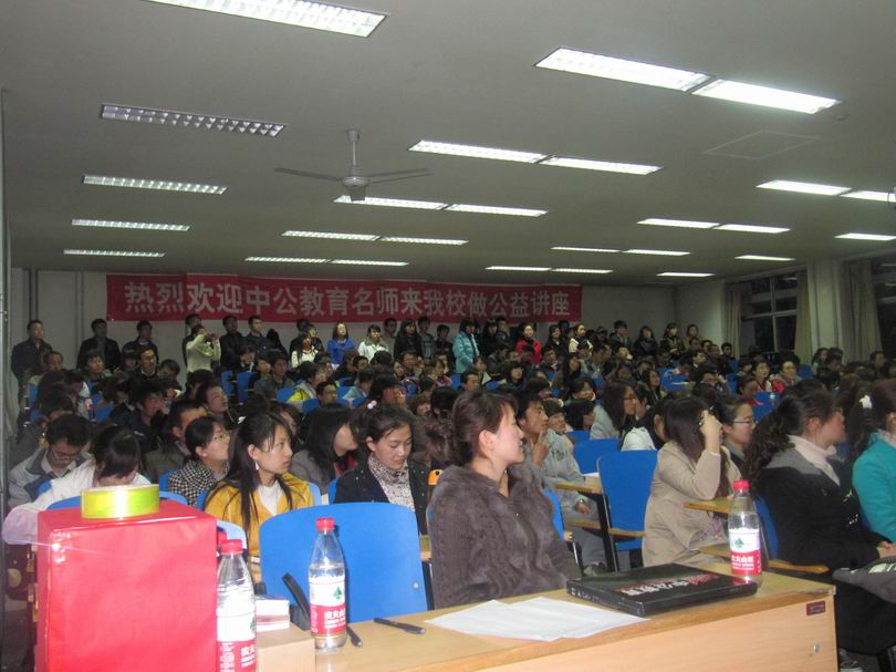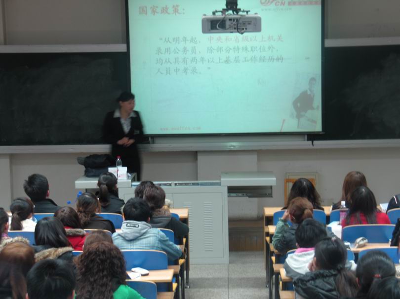 3月16日晚上,由宁夏大学学生处和政新葡的京集团8814vip联合举办的“2011公务员考试备考指南”专题讲座在宁夏大学C区一教221教室举行。讲座由中国公务员教育时政专家李雪老师讲授,来自我院2008级、2007级及其他兄弟院系的200多名学生到场聆听。