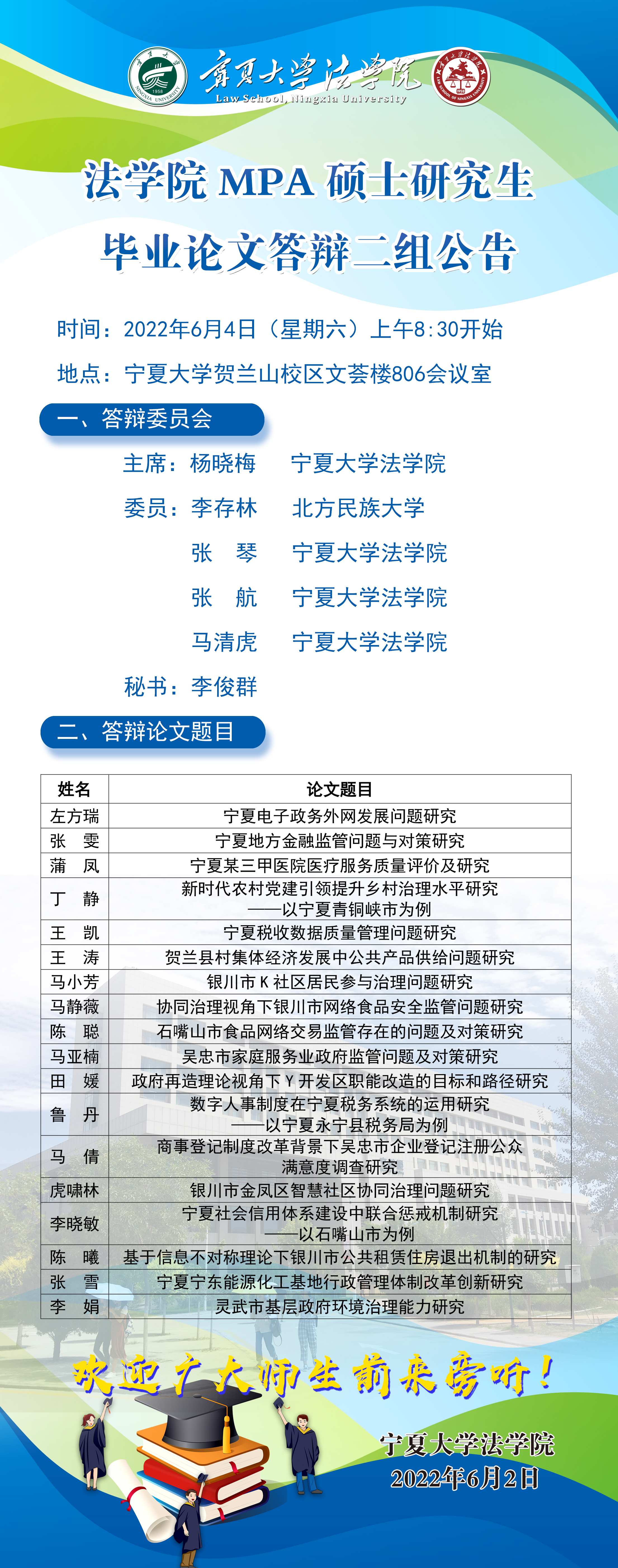 新葡的京集团8814vip官方登录公共管理(MPA)硕士研究生毕业论文答辩二组公告