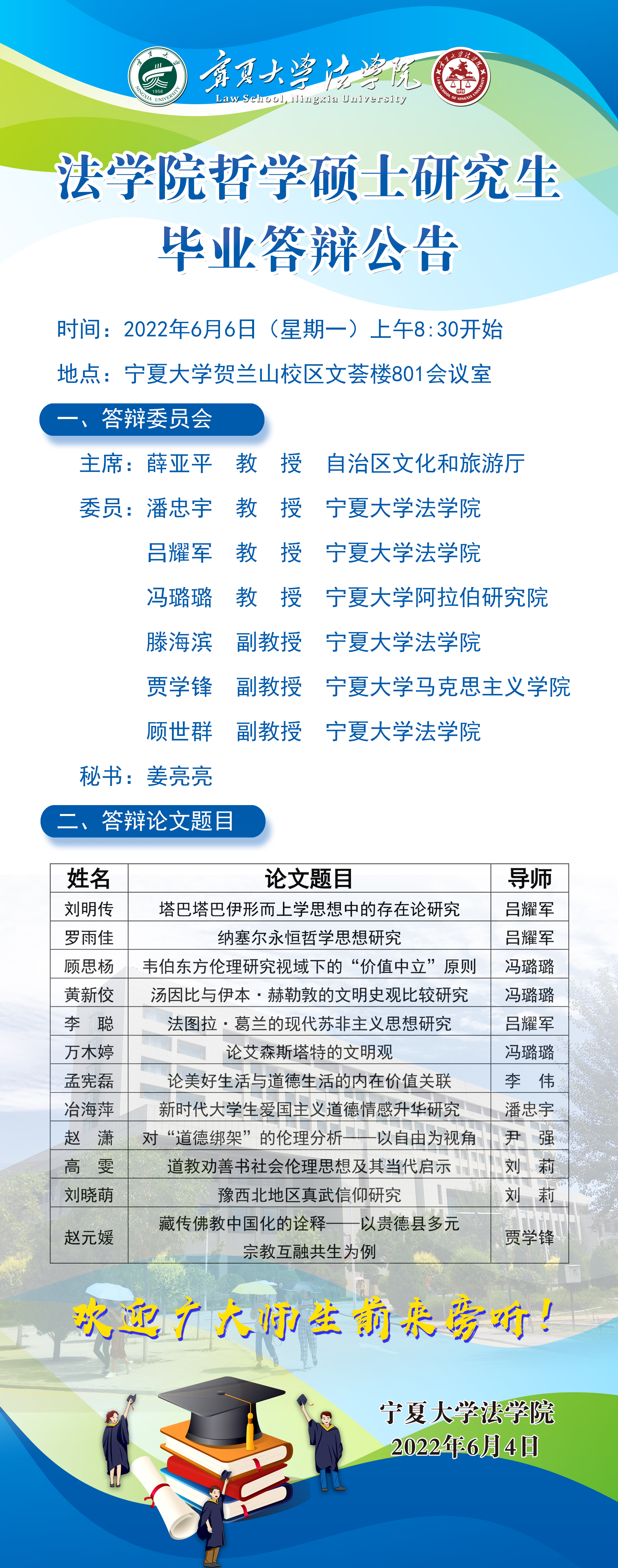 新葡的京集团8814vip官方登录哲学硕士研究生毕业答辩公告
