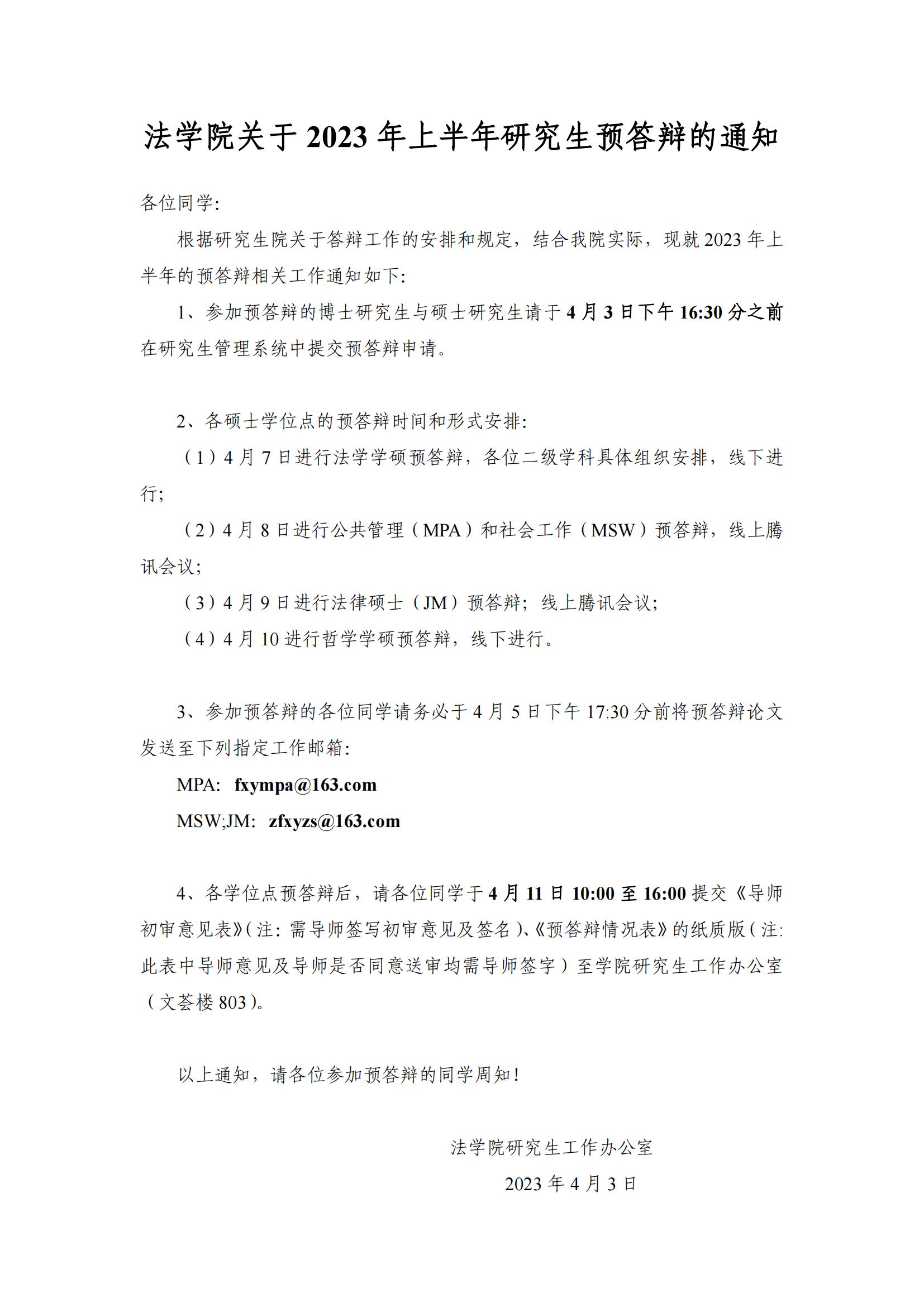 新葡的京集团8814vip关于2023年上半年研究生预答辩的通知