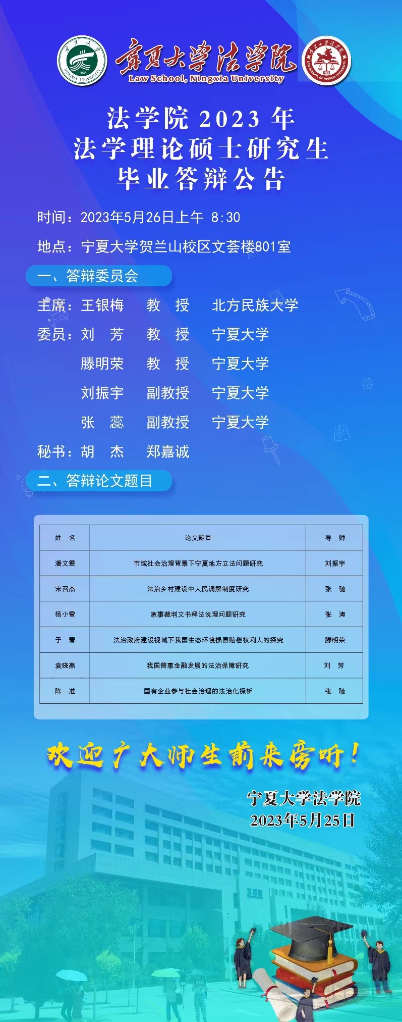 新葡的京集团8814vip2023年法学理论硕士研究生毕业答辩公告