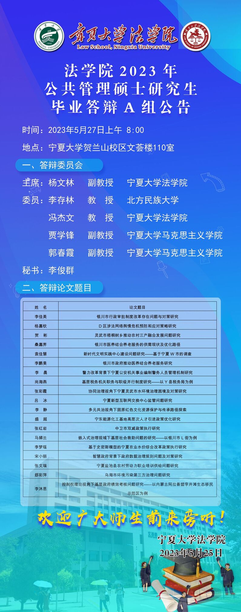 新葡的京集团8814vip2023年公共管理硕士研究生毕业答辩A组公告