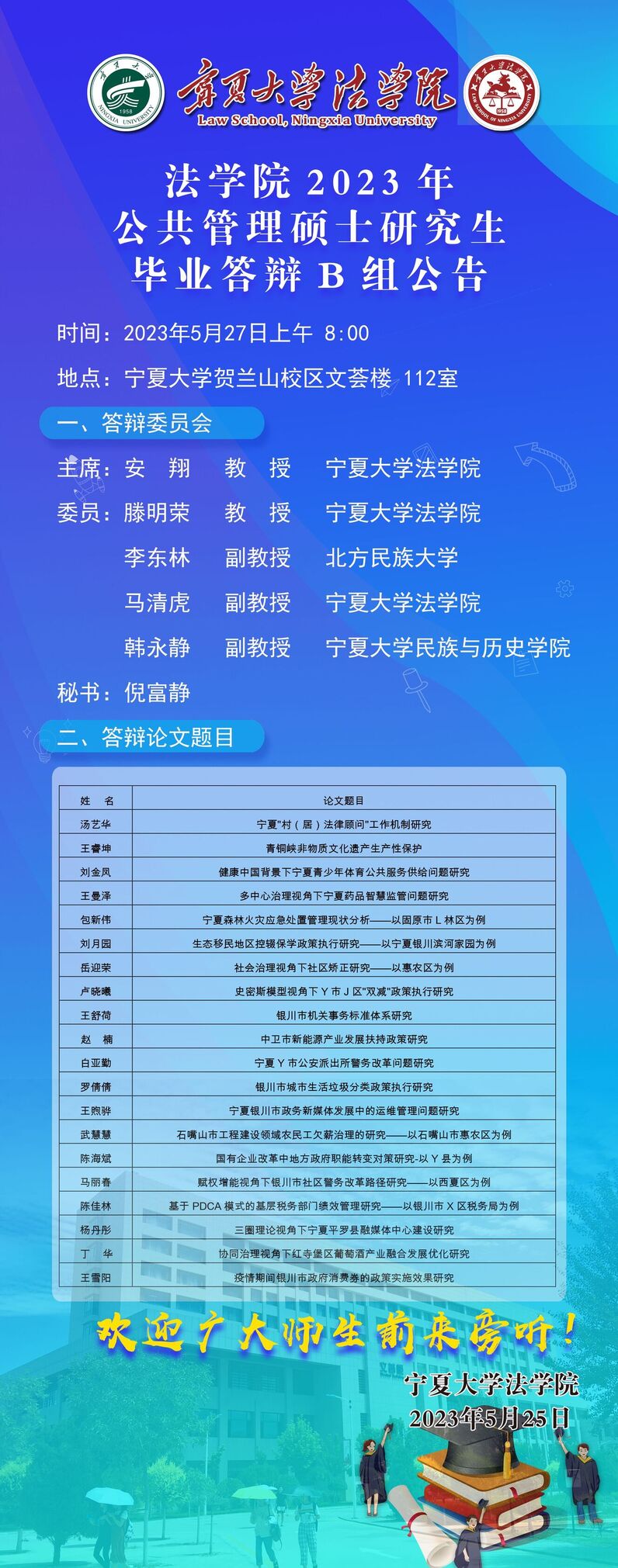 新葡的京集团8814vip2023年公共管理硕士研究生毕业答辩B组公告