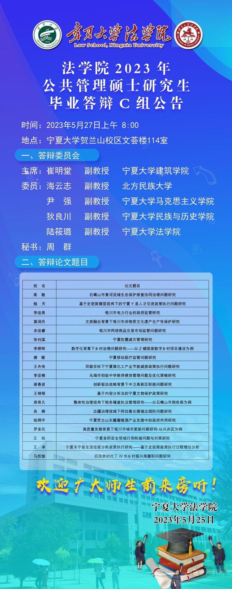 新葡的京集团8814vip2023年公共管理硕士研究生毕业答辩C组公告