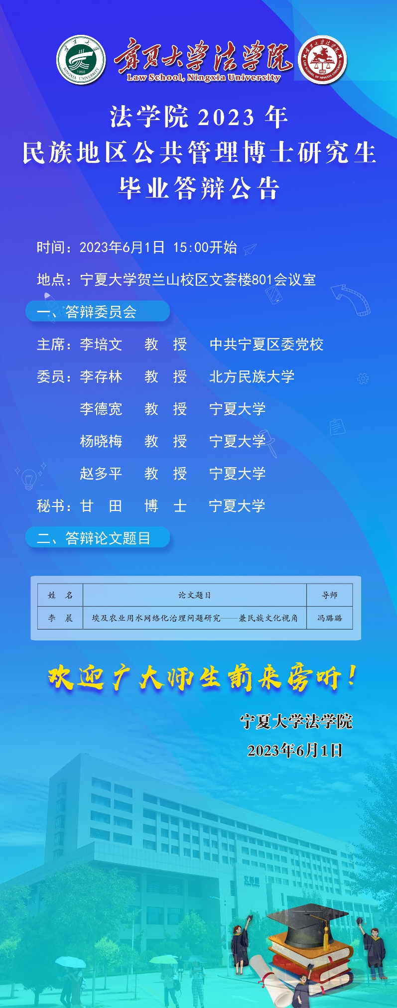 新葡的京集团8814vip2023年民族地区公告管理博士研究生答辩公告