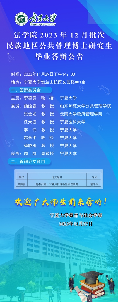新葡的京集团8814vip2023下半年民族地区公共管理专业博士毕业答辩公告