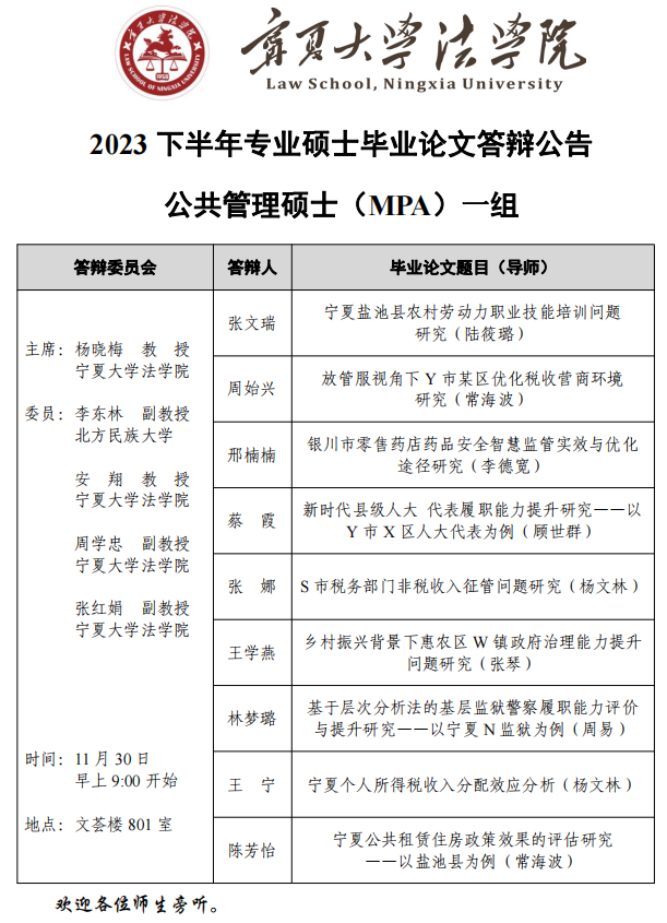 新葡的京集团8814vip2023下半年公共管理硕士毕业答辩一组公告