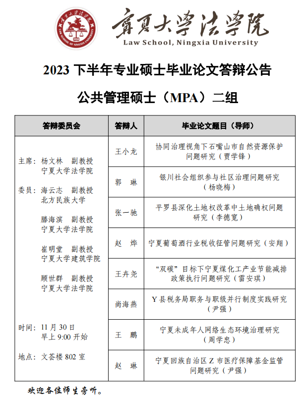 新葡的京集团8814vip2023下半年公共管理硕士毕业答辩二组公告