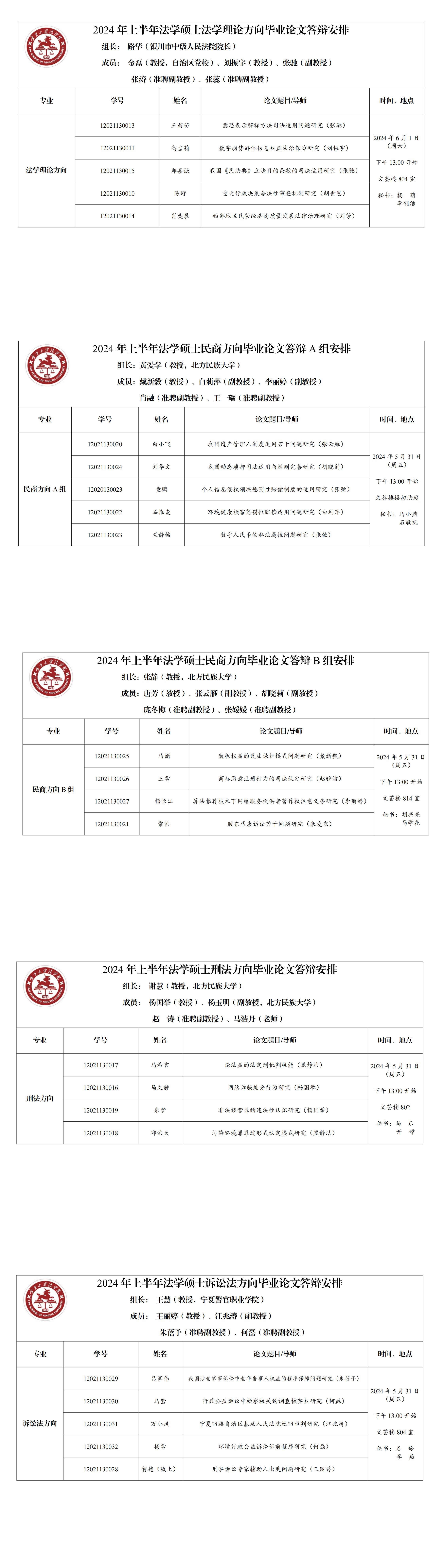 新葡的京集团8814vip2024上半年法学硕士毕业答辩公告