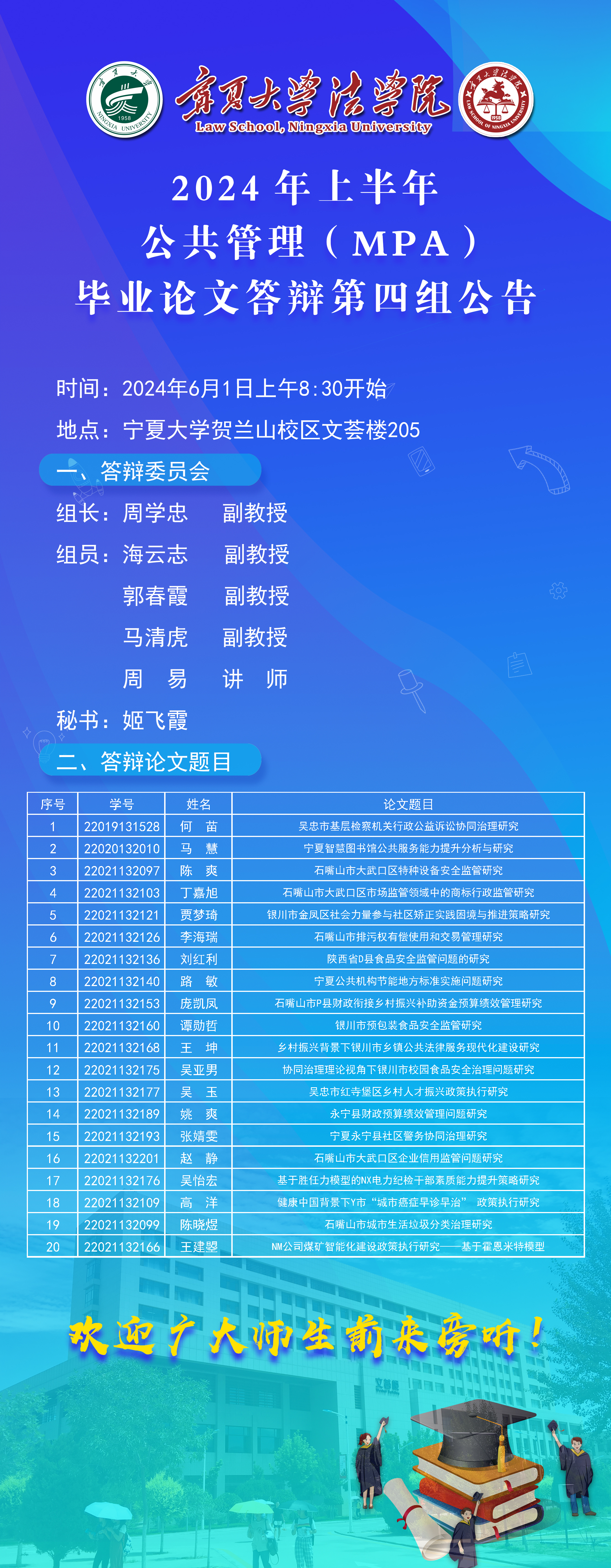 新葡的京集团8814vip2024上半年公共管理硕士(MPA)毕业论文答辩第四组公告