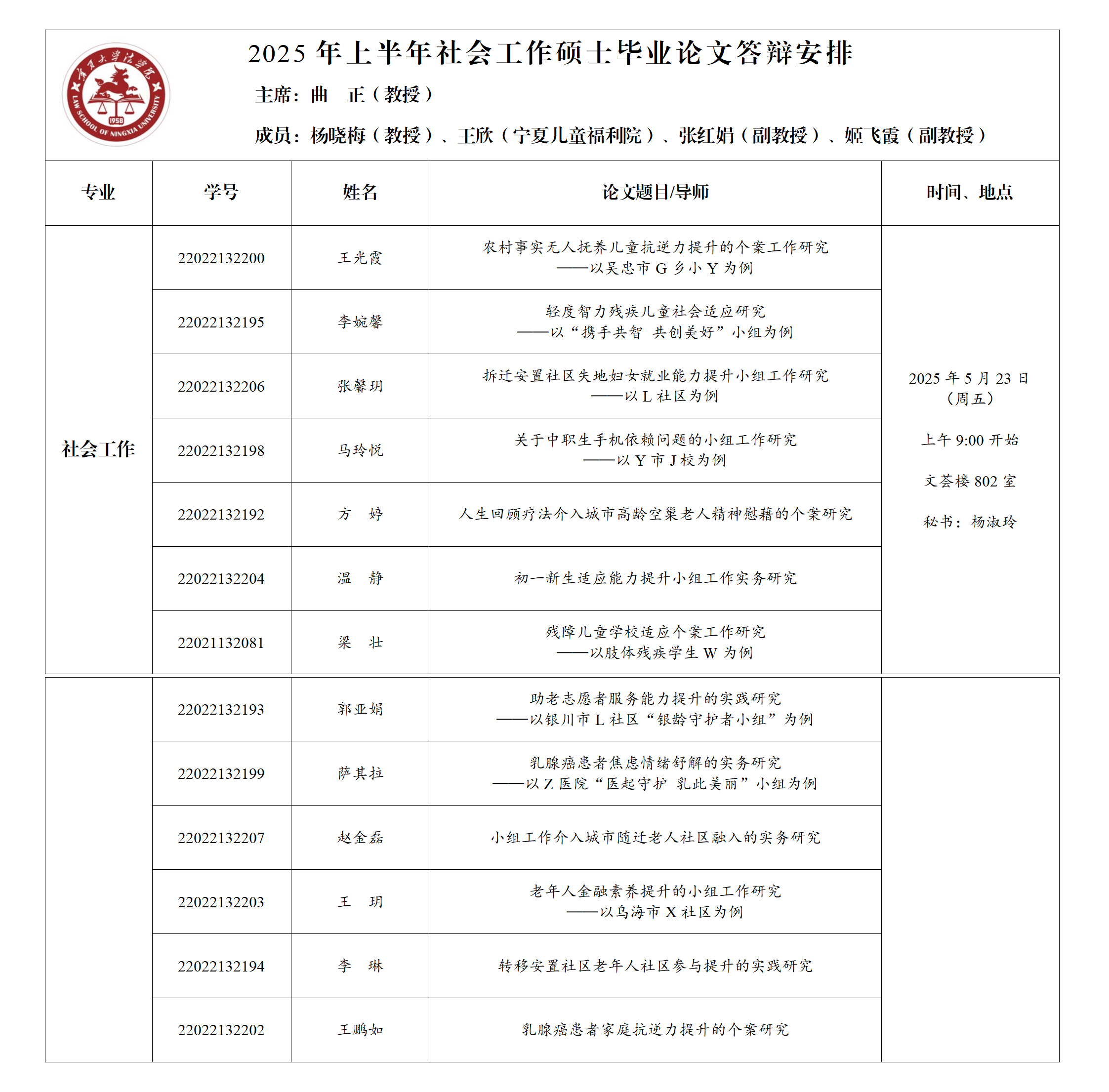 2025年上半年社会工作专业硕士毕业论文答辩公告