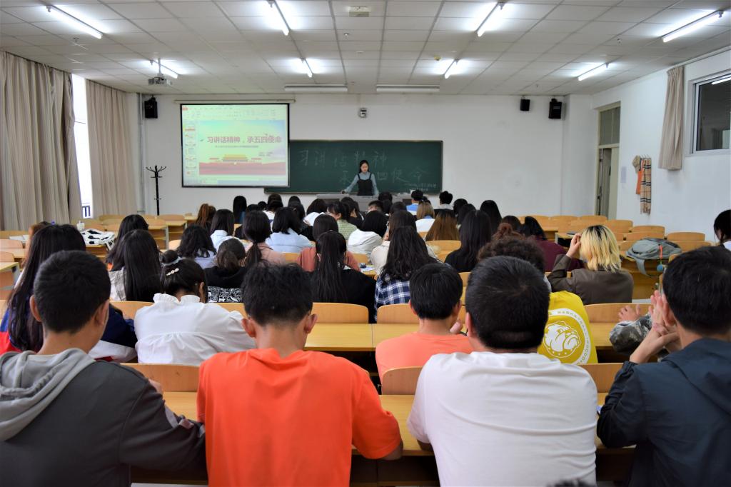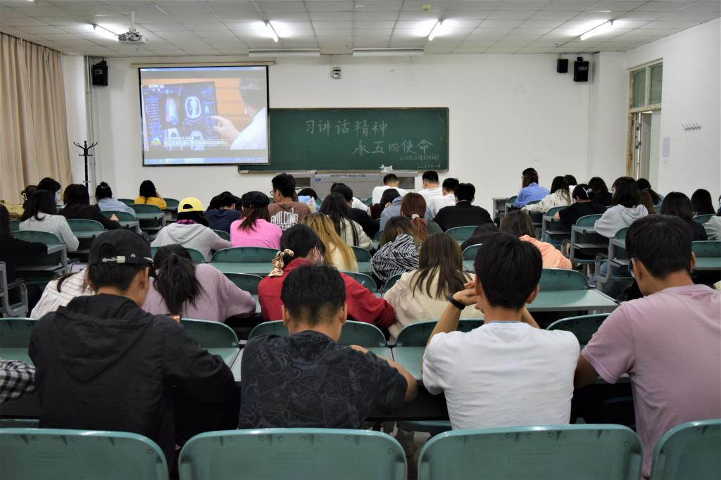 在主题团日活动中,各班团支部集体观看了习近平总书记考察清华大学时的讲话视频。总书记在讲话中指出,“广大青年要肩负历史使命,坚定前进信心,立大志、明大德、成大才、担大任,努力成为堪当民族复兴重任的时代新人,让青春在为祖国、为民族、为人民、为人类的不懈奋斗中绽放绚丽之花。”总书记对青年的殷切嘱托饱含深情,为万千学子勇毅前行注入了强大动力。同学们纷纷表示,要时刻把爱国和奋斗紧密结合起来,继承和发扬五四精神,把个人理想追求融入党和国家事业中,把自身前途命运同国家和民族前途命运紧紧联系在一起。