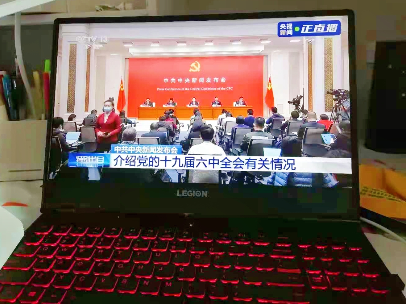 中国共产党第十九届中央委员会第六次全体会议,于2021年11月8日至11日在北京举行。全会审议通过了《中共中央关于党的百年奋斗重大成就和历史经验的决议》。新葡的京集团8814vip师生积极收听收看中共中央举行的新闻发布会,认真学习党的十九届六中全会精神,反响热烈。