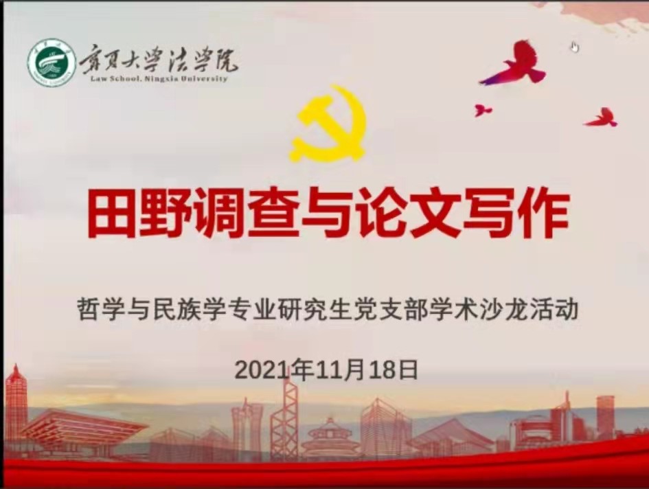 为促进学科交叉融合,激发研究生学术热情,拓宽研究生学术视野,在党史学习教育中为研究生办实事,切实提升研究生学术能力,11月18日下午,哲学与民族学研究生党支部举办线上《田野调查与论文写作》主题学术沙龙活动。院长、博士生导师吕耀军教授,博士生导师杨晓梅教授应邀担任本期学术沙龙的点评人。学院党委书记潘瑞应邀参加本期活动。哲学与民族学专业60余名博士生、硕士生到会聆听。2016级民族学博士生樊庆元主持了沙龙活动。