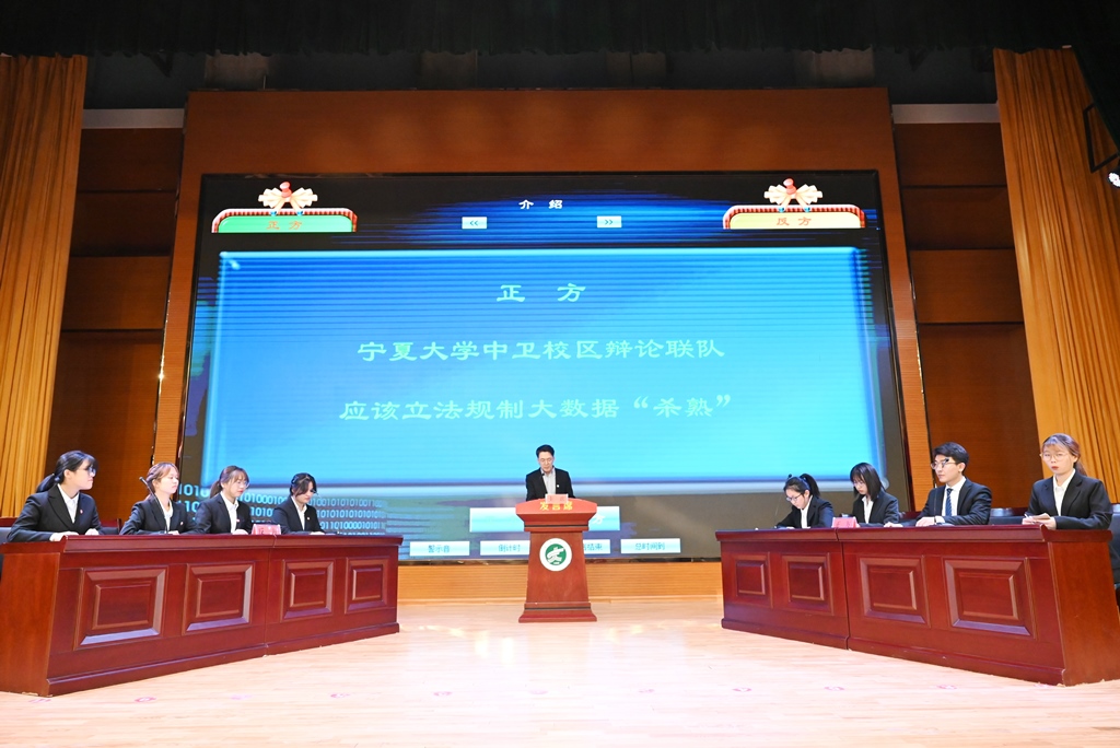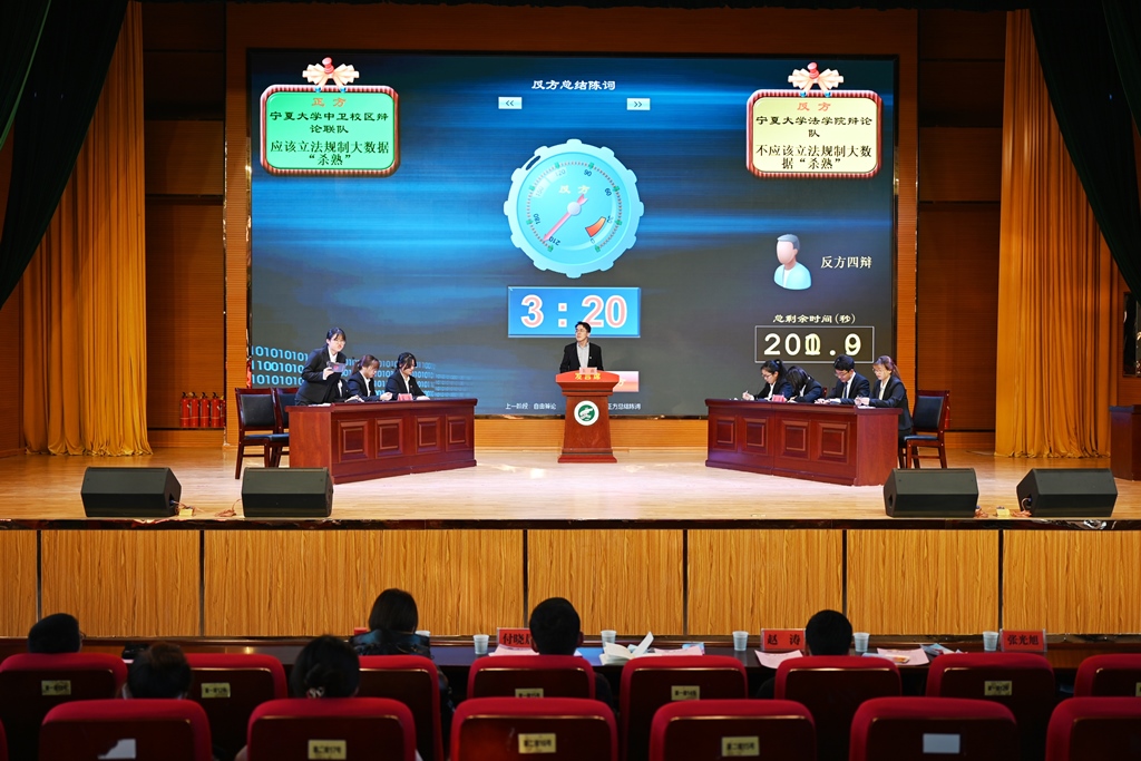 为提高普法宣传活动的趣味性,在中卫校区活动现场,中卫校区联队与新葡的京集团8814vip辩论队就是否应该立法规制大数据“杀熟”展开了激烈的辩论,正方中卫校区联队认为应该立法规制大数据“杀熟”,反方新葡的京集团8814vip辩论队认为不应该立法规制,双方从法律角度,从现实实际进行了讨论,场上队员在表达观点、思维碰撞的同时,也提高了学法用法的意识。