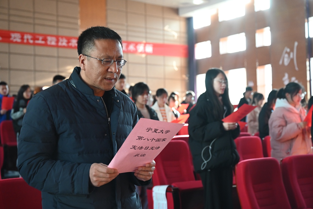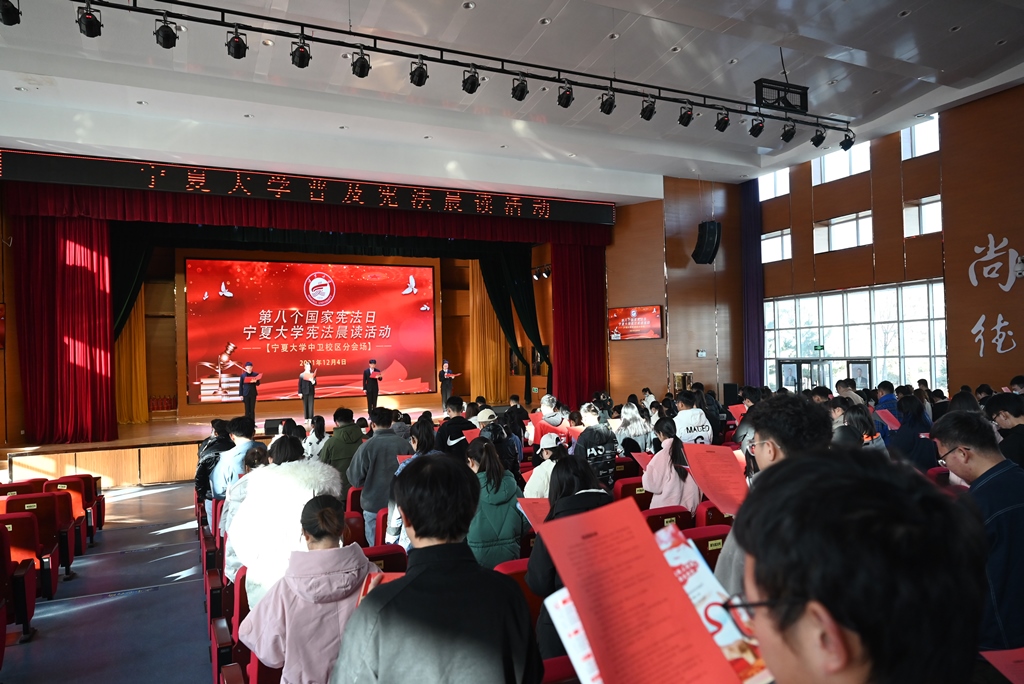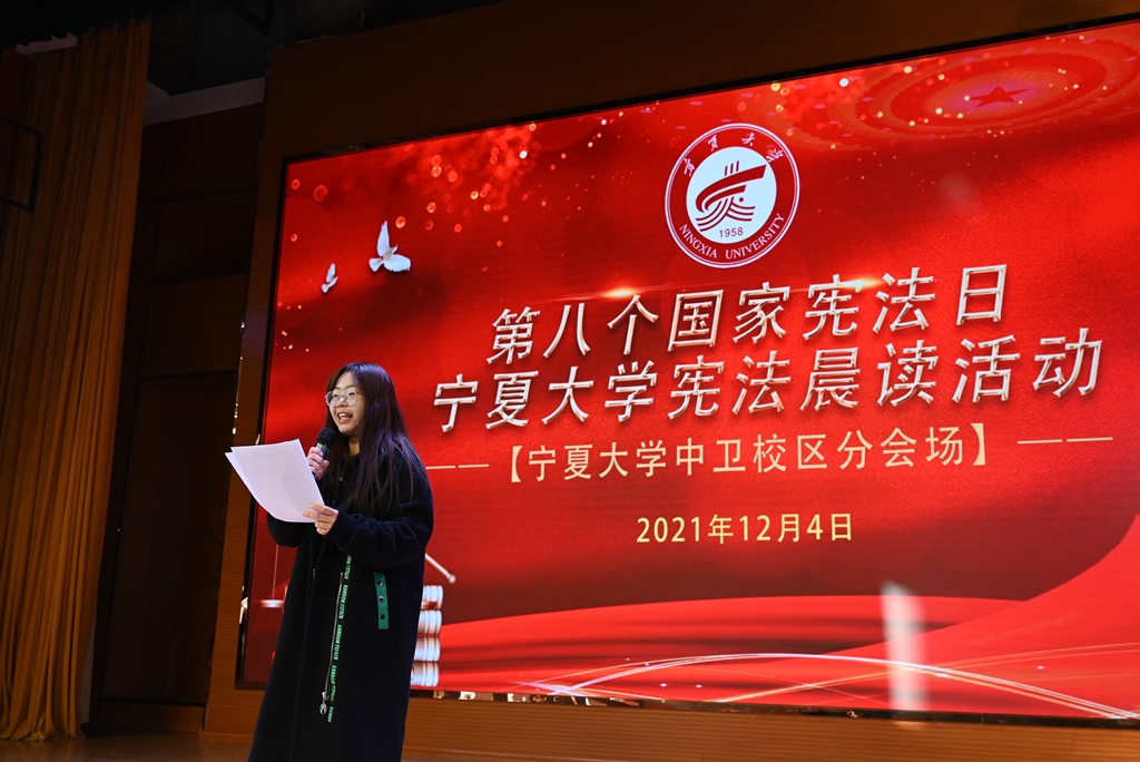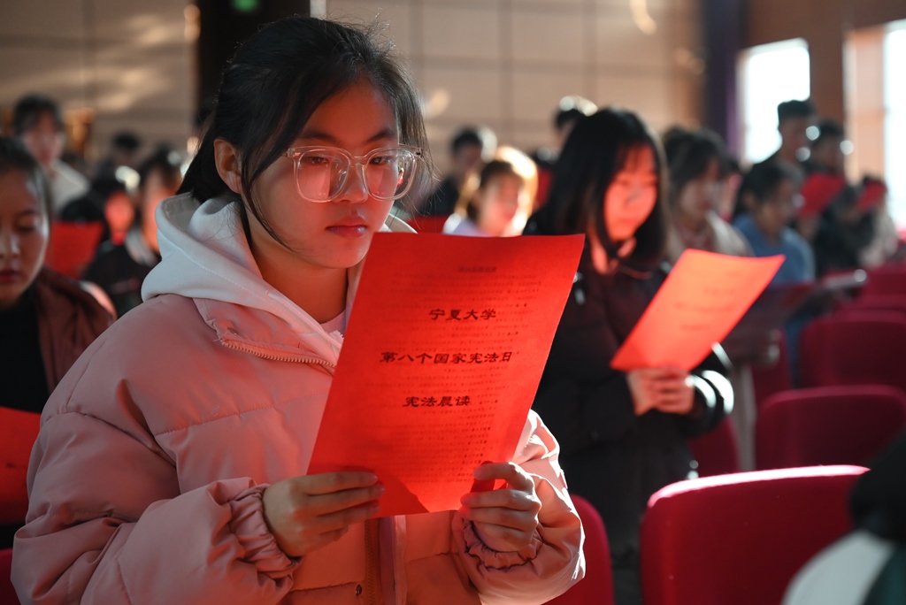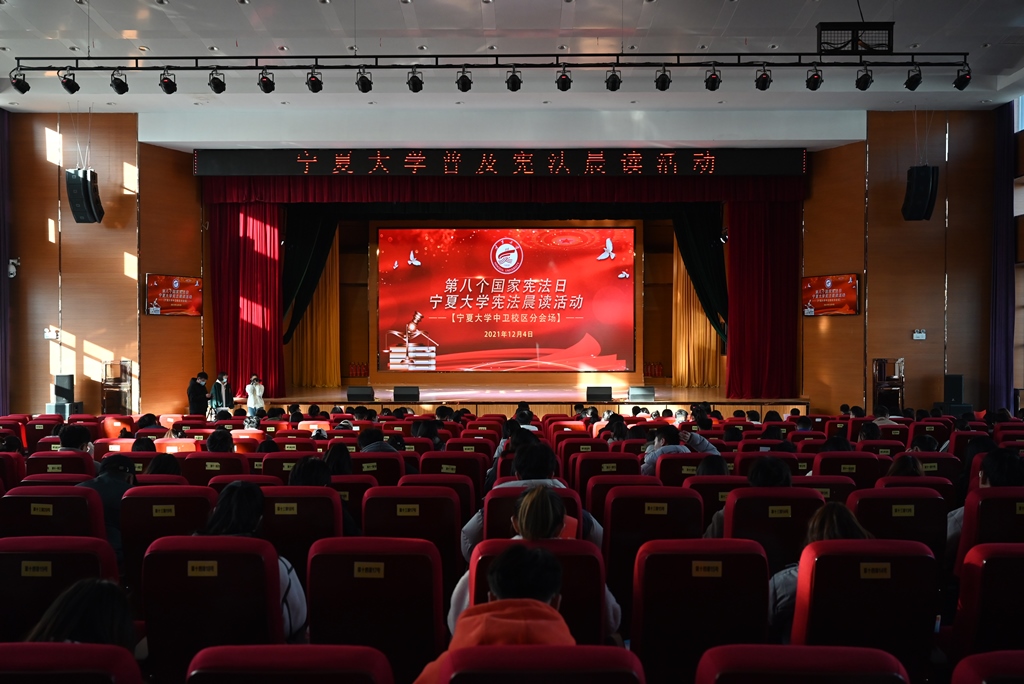 宪法,是我国的根本大法,是治国安邦的总章程。举办宪法晨读活动是学校深入开展“宪法宣传周”系列活动的重要组成部分。为了营造浓厚的宪法学习氛围,增强全体师生的宪法意识,感受宪法的权威和尊严,12月4日清晨,在中卫校区应理报告厅隆重举行第八个国家宪法日宁夏大学宪法晨读活动。